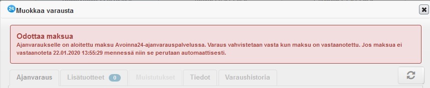 Ajanvarauksen maksaminen Avoinna24-palvelussa