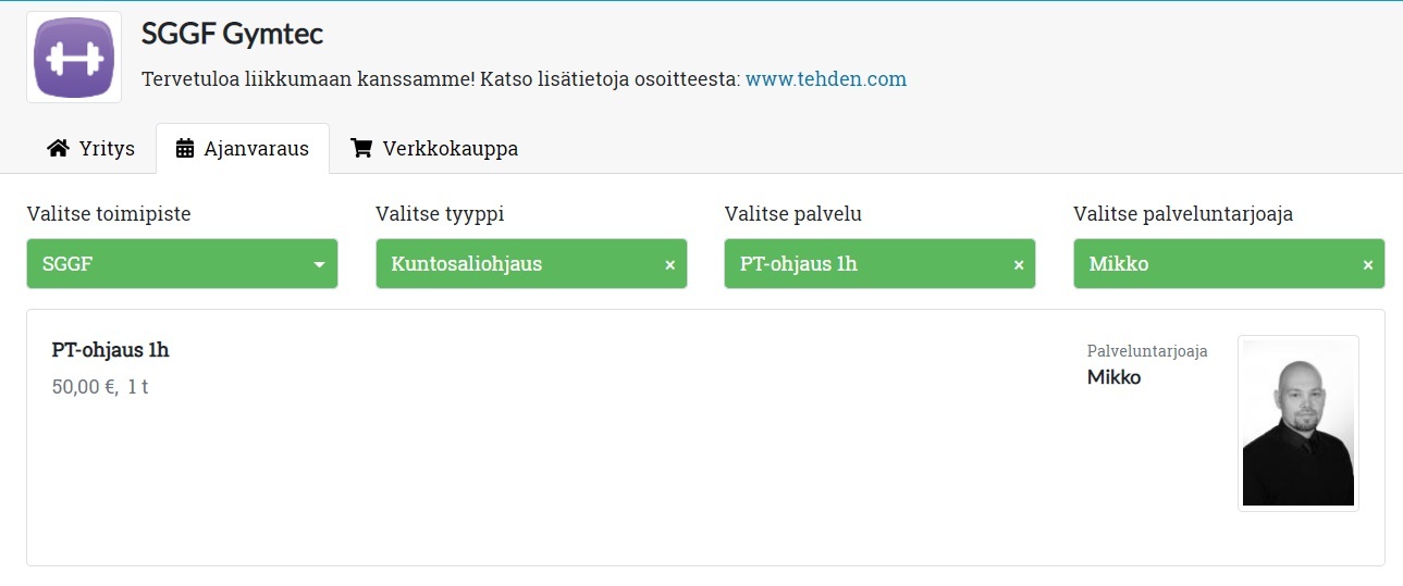 - Esittele palveluntarjoajat. Informatiivinen esittelyteksti auttaa asiakasta valitsemaan itselleen sopivimman palveluntarjoajan, kun taas leppoisampi teksti luo positiivista mielikuvaa yrityksestä. Kuva palvelee myös asiakasta, joka haluaisi käydä uudelleen samalla hierojalla, mutta ei muista tämän nimeä. Pääkäyttäjä voi lisätä esittelyn Käyttäjähallinnan kautta, työntekijä itse Omat asetukset -sivun kautta.