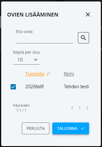 Ovet ja kohteet -sivulle on listattu kaikki toimipisteet ja jokaisen toimipisteen alle sinne kuuluvat ovet. Tänne ei tarvitse tehdä muutoksia.
