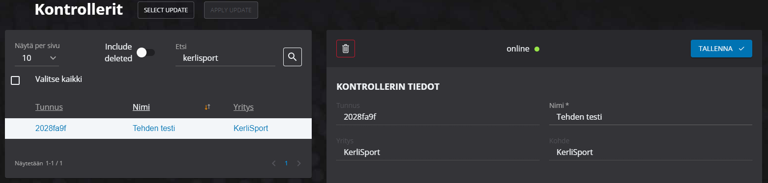 Kontrollerit-sivulta voi tarkistaa, onko jokin ovi online- vai offline-tilassa. Jos ovi on offline-tilassa, sen oviohjaukset ja kulkutunnisteet eivät toimi.