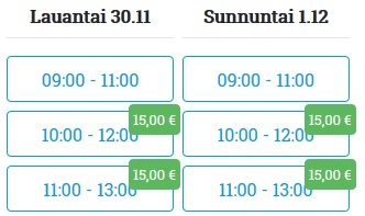 - Lisää ne kellonajat ja viikonpäivät, jolloin haluat myydä palvelua tai tuotetta alennettuun hintaan ja klikkaa Seuraava.