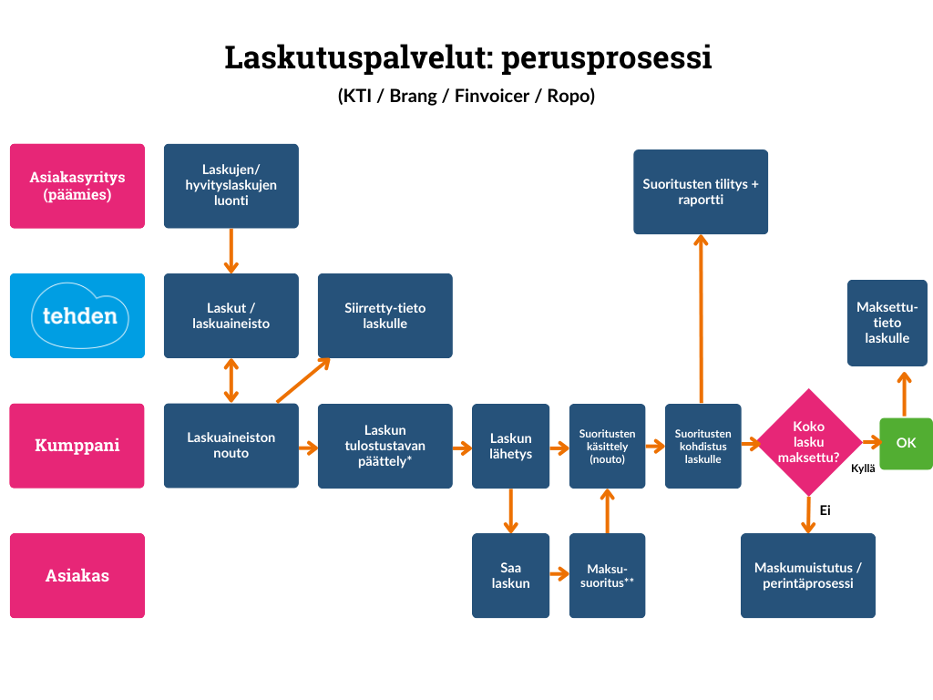 Integroidut laskutuspalvelut: perusprosessin kuvaus (KTI, Brang, Finvoicer, Ropo)