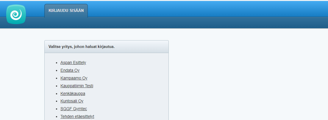 - Klikkaa oikeaa ympäristöä ja kirjaudu sisään.