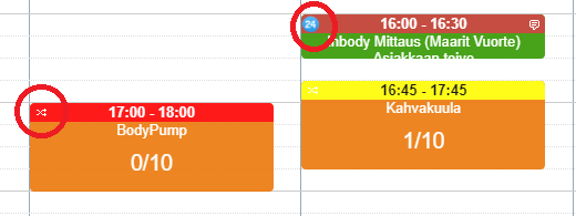 - Risteävät nuolet: Toistuvan palvelun yhden tai useamman kerran ajankohtaa on muutettu (poikkeaa normaalista toistuvuudesta).