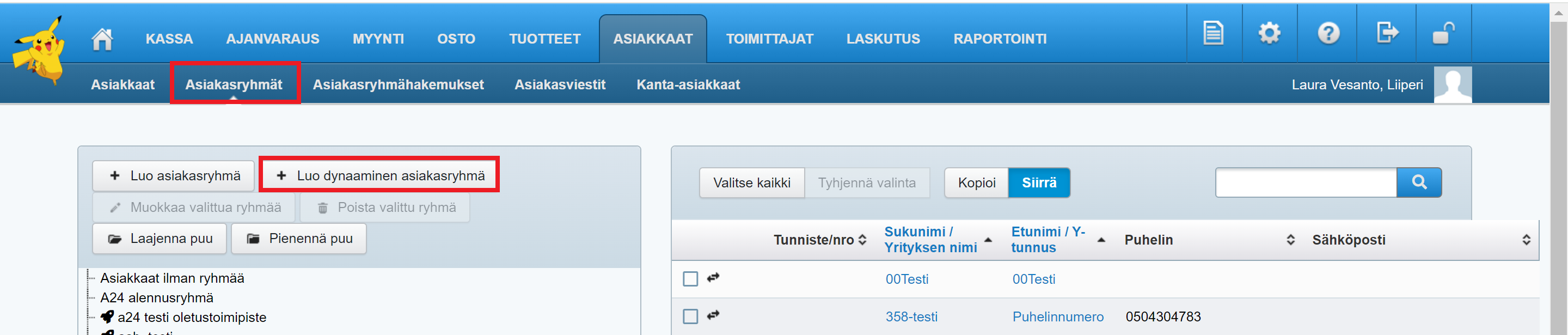 - Siirry Asiakkaat-ohjelman Asiakasryhmät-osioon ja paina Luo dynaaminen asiakasryhmä -painiketta: