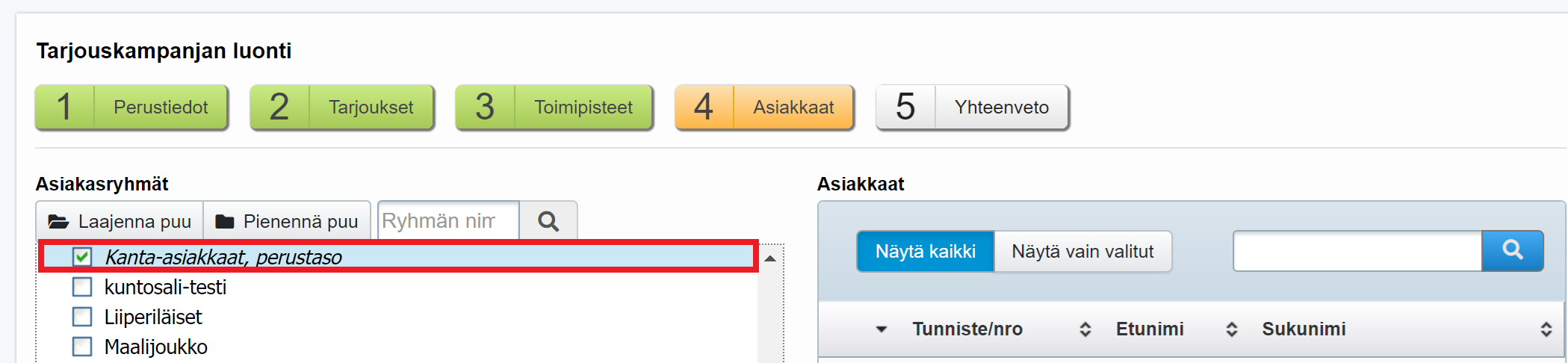 Tietylle kanta-asiakastasolle suunnatun kampanjatarjouksen luominen