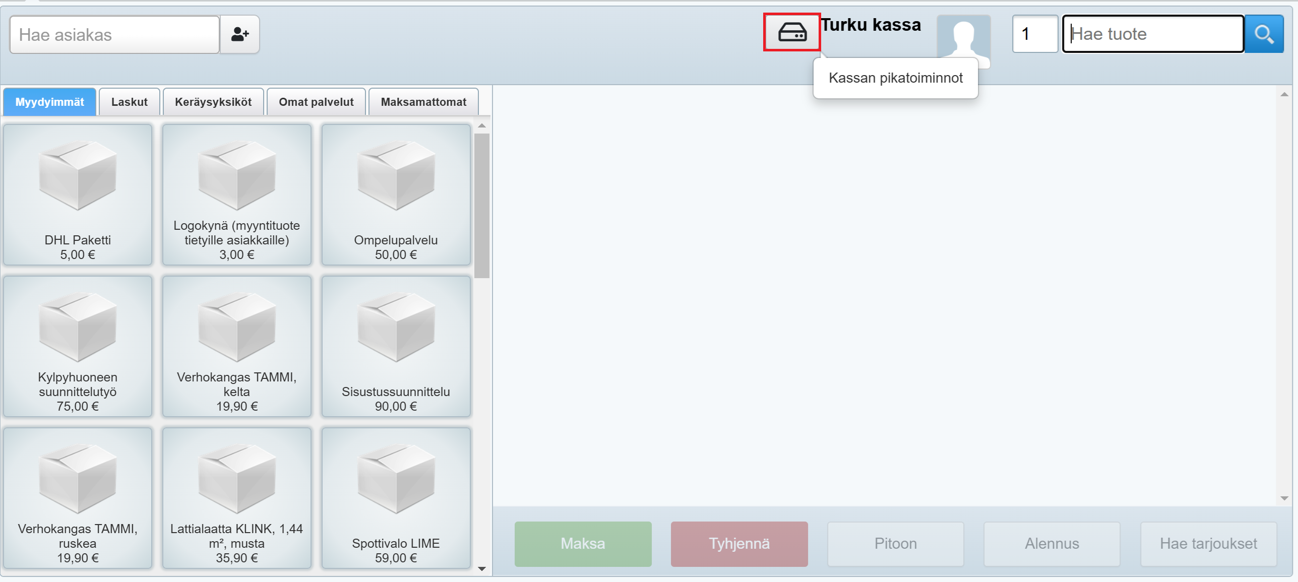 1. Klikkaa Kassan pikatoiminnot -painiketta: