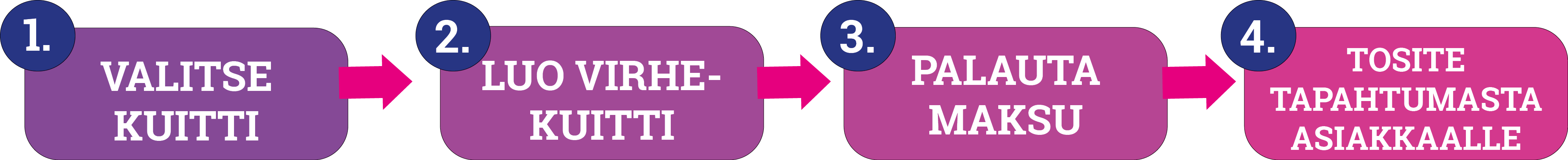 - Asiakas saa tapahtumasta virhekuitin. Kuitti voidaan tarvittaessa välittää myös sähköpostiin.