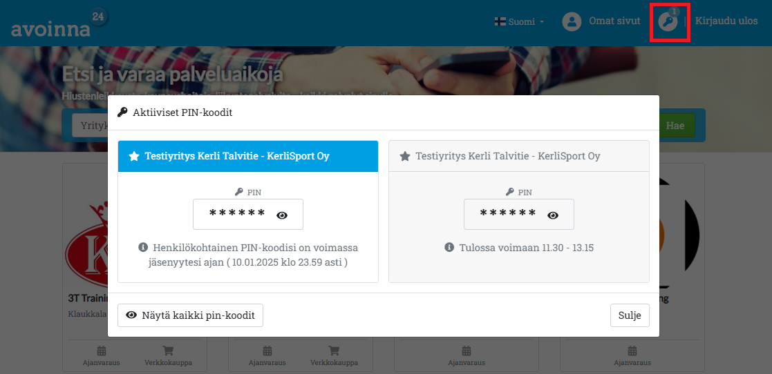 Asiakas voi tarkistaa oman PIN-koodinsa kirjautumalla Avoinna24-tililleen. Jos asiakkaalla on voimassa olevia PIN-koodeja, etusivun ylälaidassa näkyy avainkuvake, jota napsauttamalla asiakas näkee kaikki voimassa olevat ja tulevaisuudessa voimaan astuvat PIN-koodinsa.