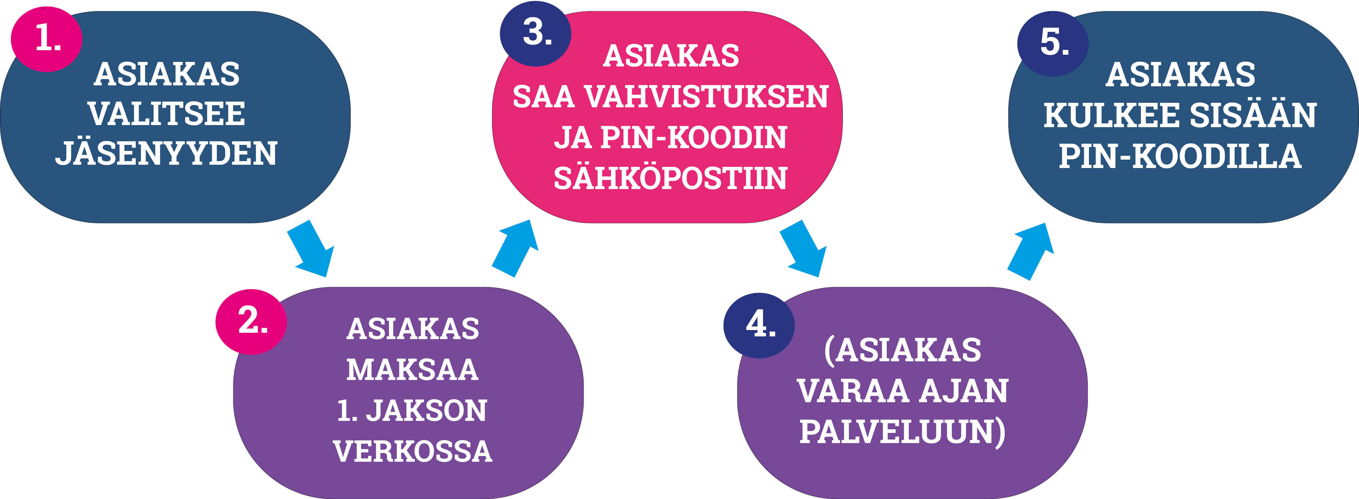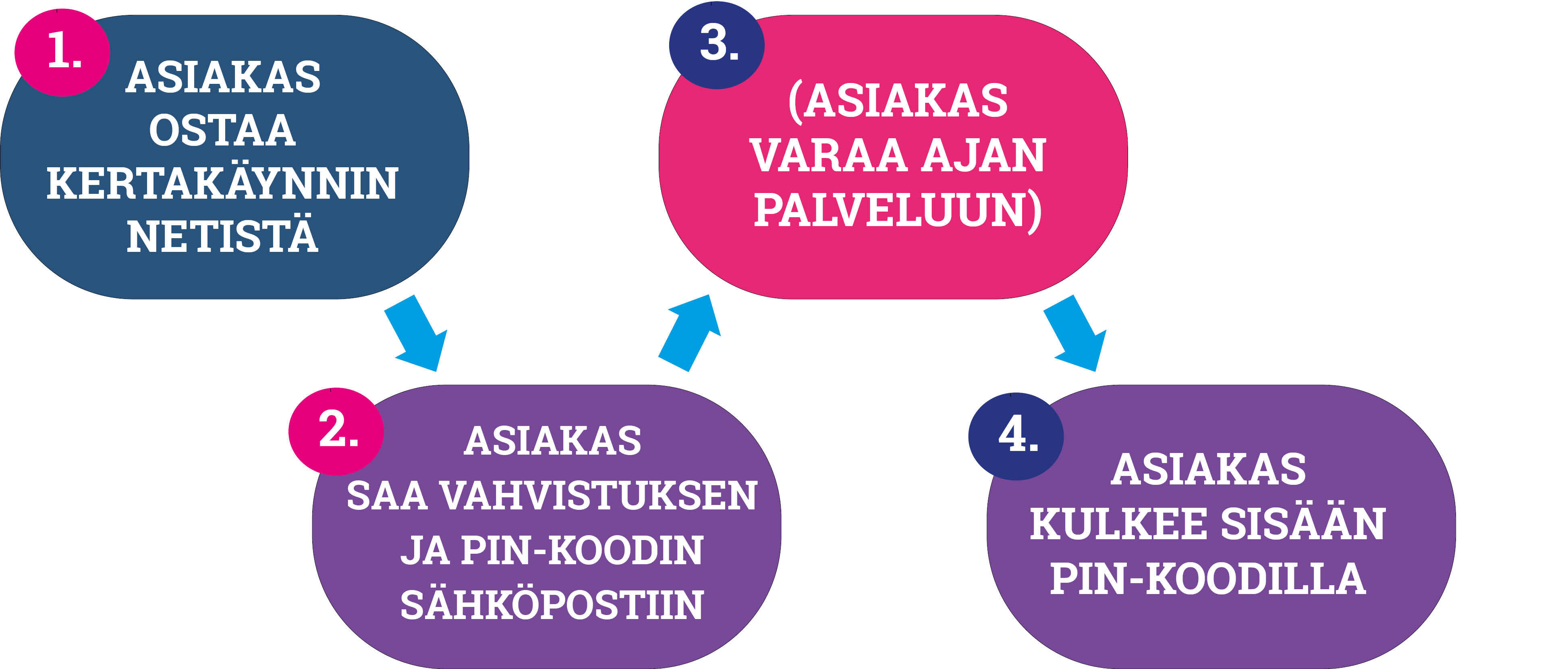 Asiakas ostaa kertakäynnin verkkokaupasta ja saa heti PIN-koodin käyttöönsä