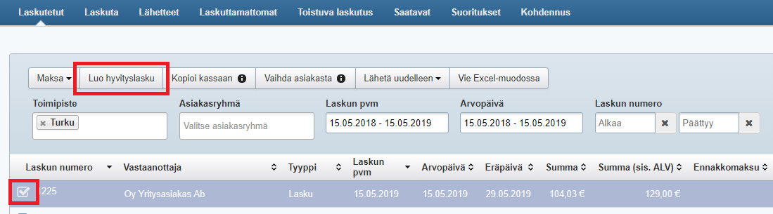 - Etsi hyvitettävä lasku.