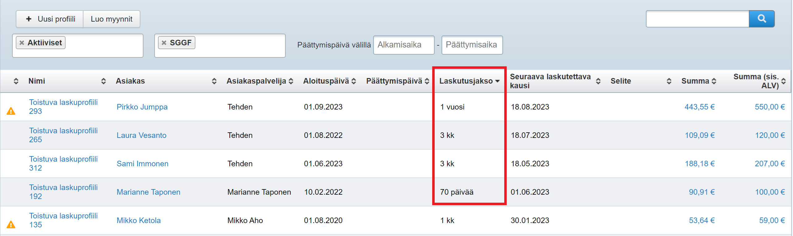 Miten muutan laskutusrytmiä?