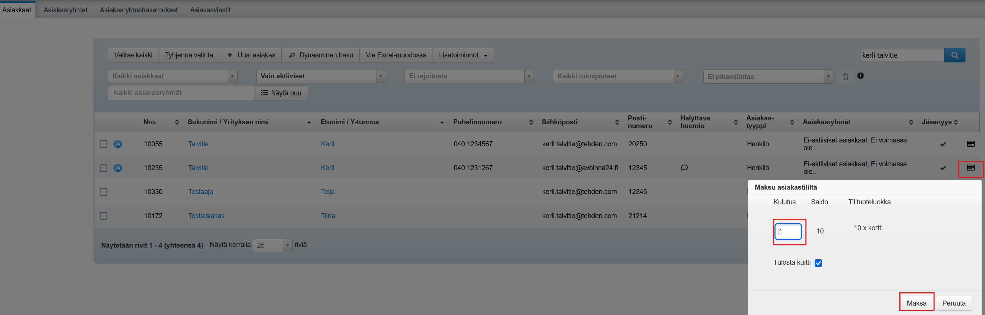 Maksu asiakastililtä sarja- tai kausikortilla