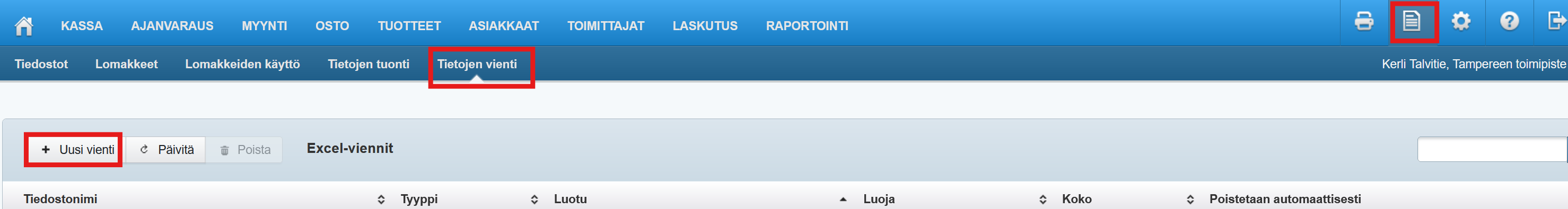 - Tallenna tuotteiden hinnat Excel-muodossa Tietojen vienti -työkalulla (viennin tyyppi Tuotehinnat). Ohjeet: Tietojen vienti Tehdenistä: