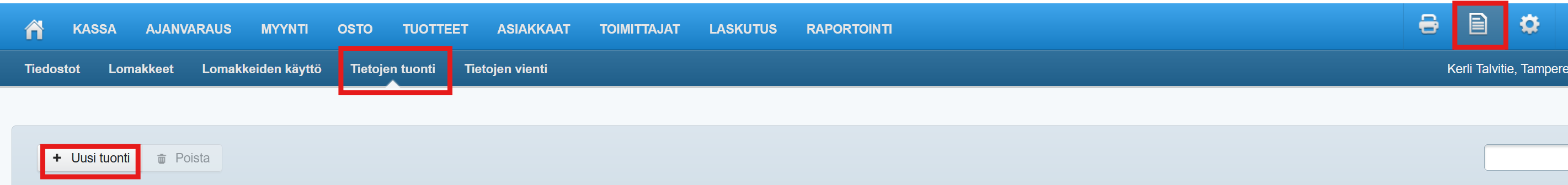 - Siirry tuontityökalun Tietojen tuonti -puolelle ja aloita uusi tuonti: