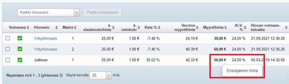 Ohjeet tuotteen hinnan ensisijaisuuden muuttamiseen: Miten muutan hintojen ensisijaisuutta tuontityökalulla?