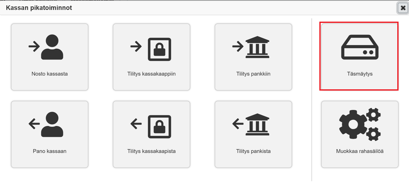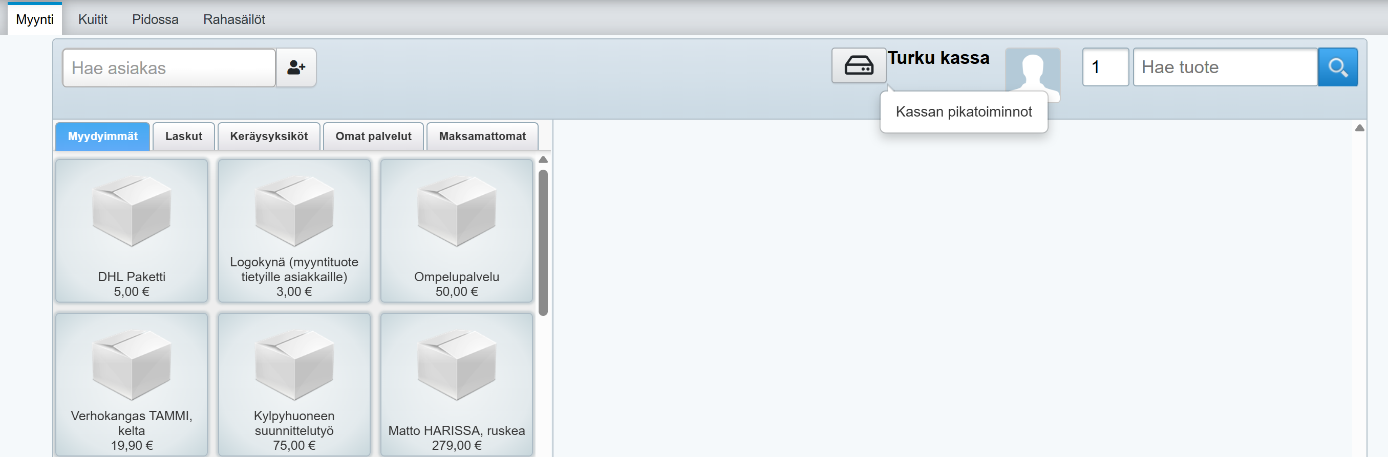 1. Klikkaa Kassan pikatoiminnot -painiketta.