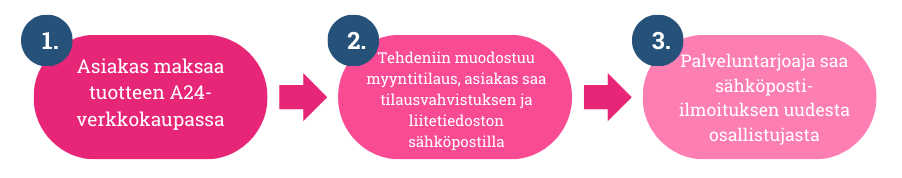 Aineettomien tuotteiden myynti Avoinna24-verkkokaupan kautta ei normaalitilanteessa vaadi yrityksen työntekijöiltä toimia, kun myytävien tuotteiden tausta-asetukset on tehty oikein.