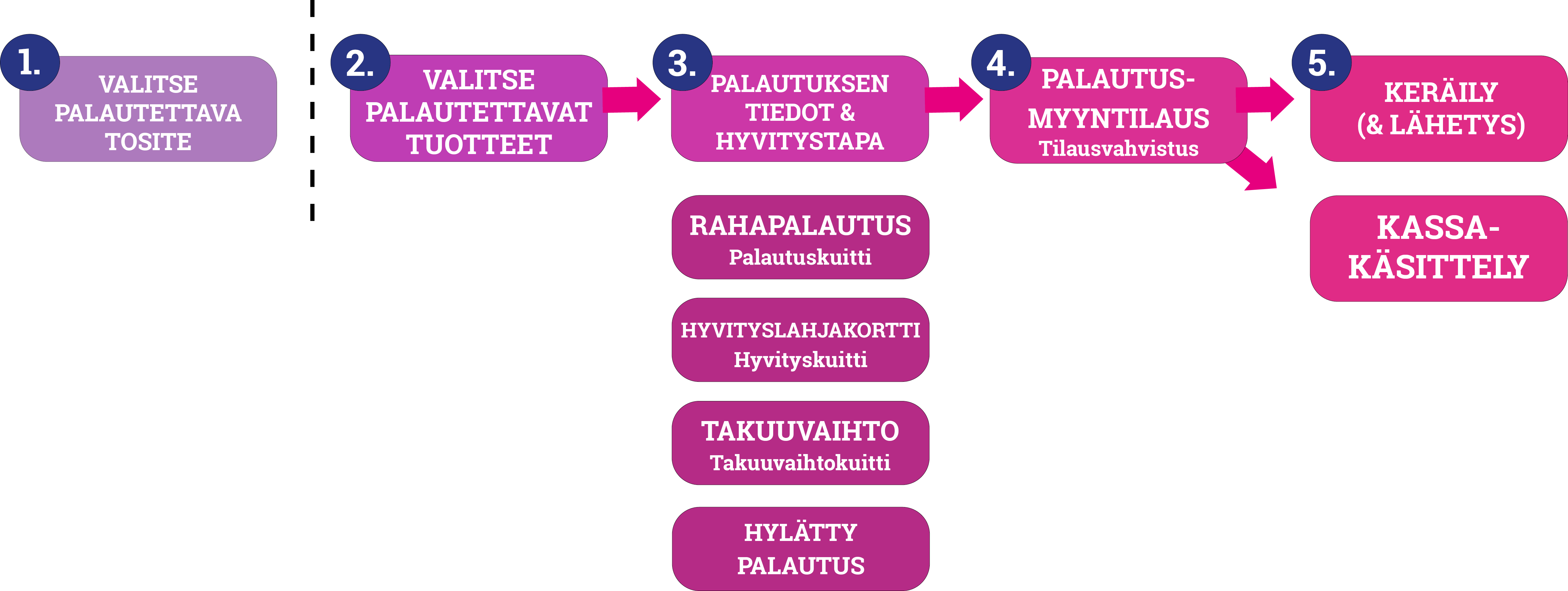 Samalla palautusmyyntitilauksella voi olla myös useampi tuote, joille valitaan eri toimenpide, eli esimerkiksi samalla tilauksella voi luoda hyvityslahjakortin yhdestä tuotteesta ja hoitaa toisen tuotteen takuuvaihdon.