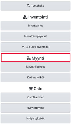 - Jos haluat aloittaa uuden keräilyn, napauta Myyntitilaukset-vaihtoehtoa.