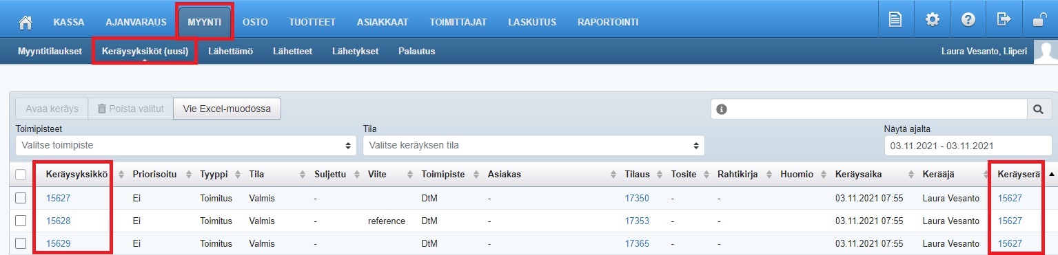 - Mikäli osa tuotteista ei ollut saatavilla, sama myyntitilaus voidaan avata ja ottaa uudestaan keräykseen.