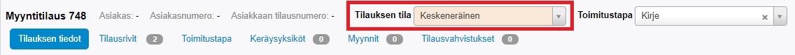 - Kun tilaus on valmis lähetettäväksi, klikkaa Lähetä-painiketta Tilauksen tiedot -välilehden alalaidassa.