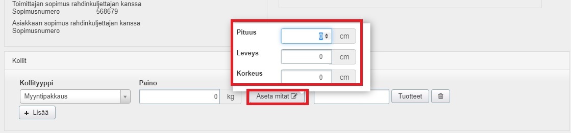 - Voit myös asettaa kollin mitat: