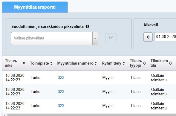 - Valitse aikaväli, jonka myyntitilausten tietoa haluat tarkastella.
