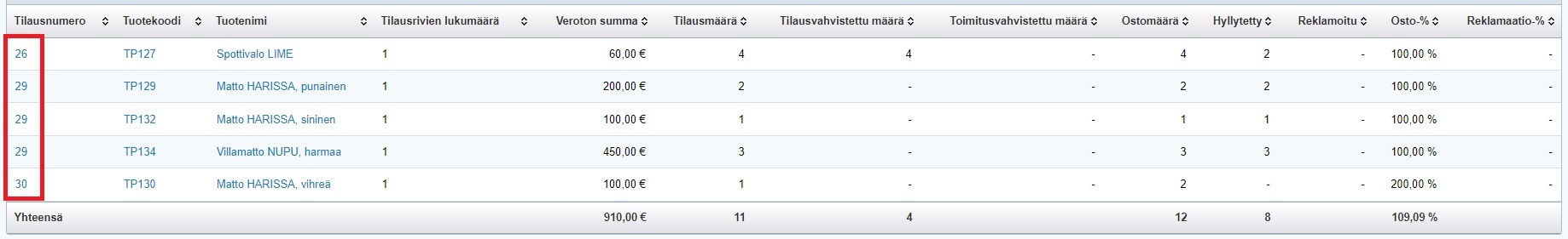 - Varmista, että aikaväli kattaa haluamasi ostotilaukset.