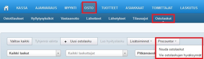Tarkemmat ohjeet integraation käyttöön löydät ohjeesta Ostolaskujen käsittely Procountor-integraatiossa.