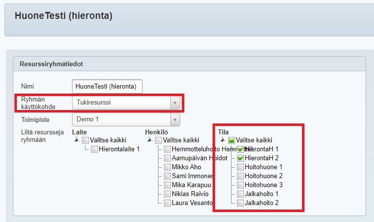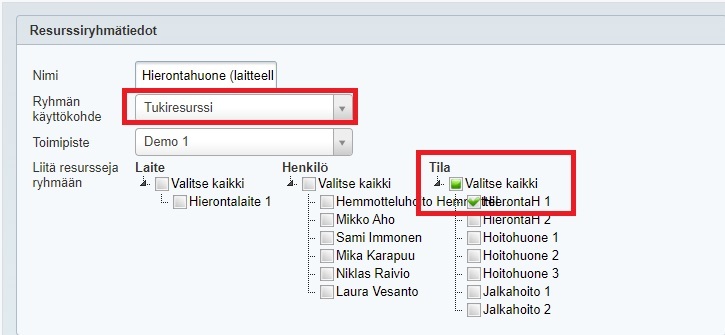 - Ryhmän käyttökohteeksi valitaan Tukiresurssi.