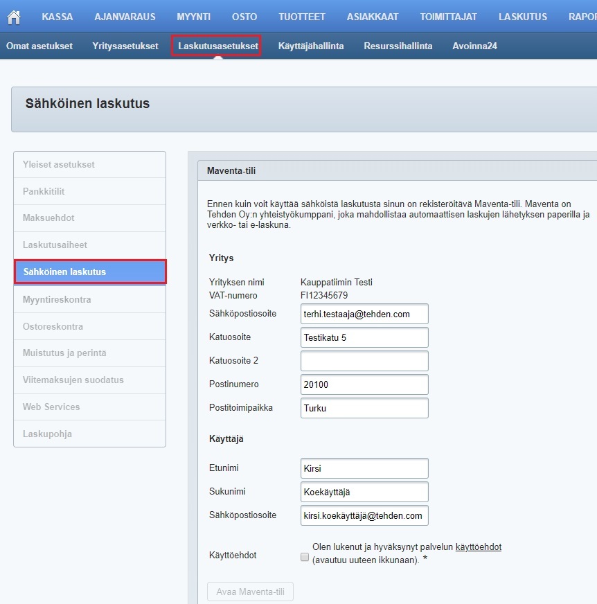 - Sähköinen laskutus käytössä: Kyllä.
