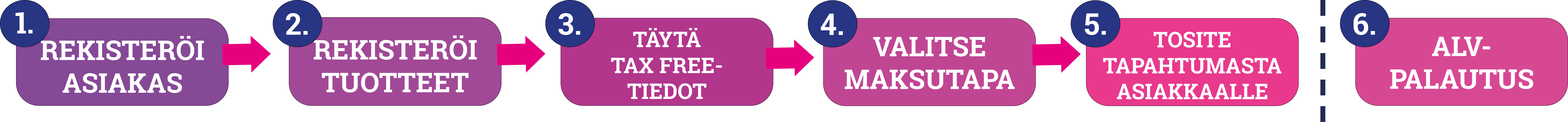 - Kirjaa tax free -käsittelyä varten tarvittavat tiedot.