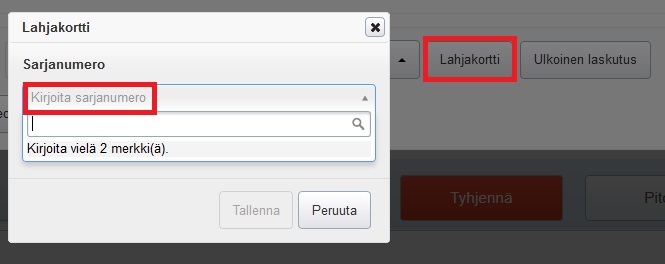 - Jos lahjakorttiin ei ole alun perin merkitty saajaa, tiedot eivät löydy järjestelmästä ilman sarjanumeroa. Asiakkaalla täytyy siis olla lahjakortti mukana.