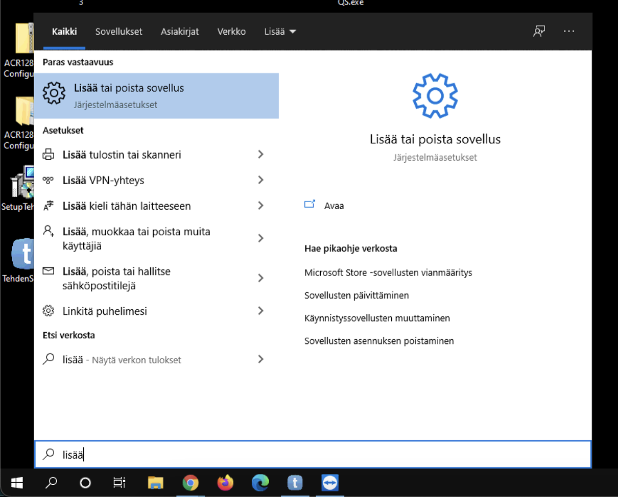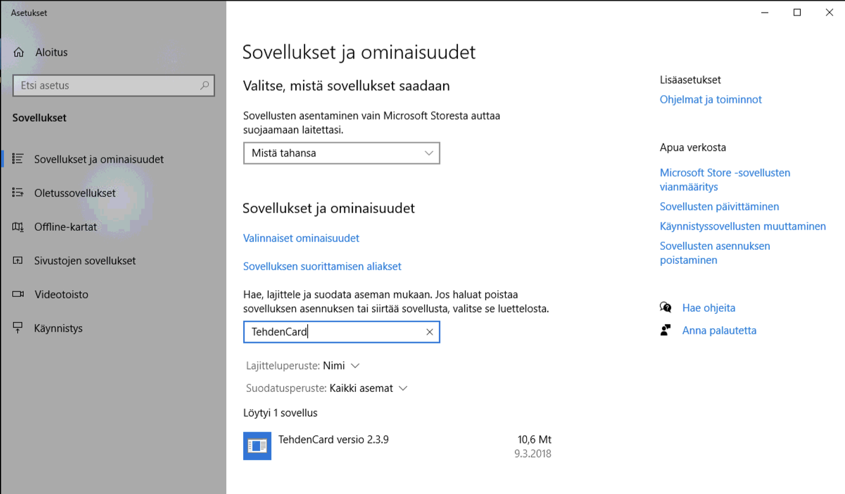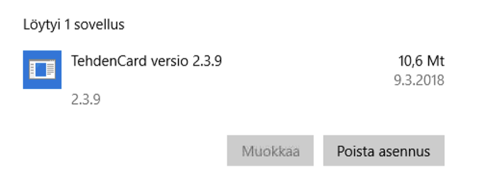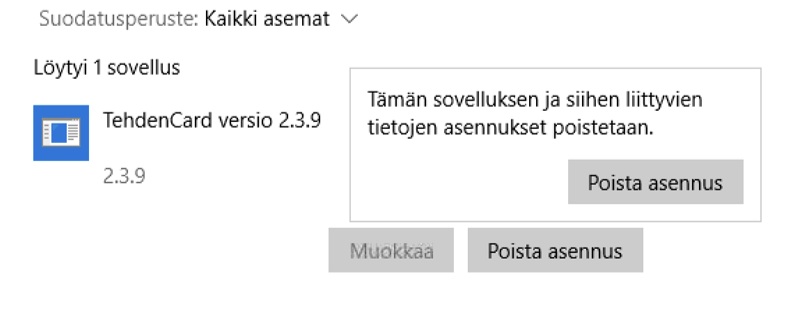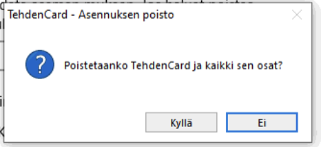 TehdenCard-sovelluksen poistaminen Windows-koneelta
