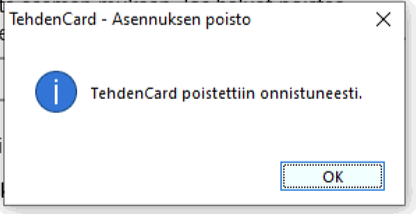 7. TehdenCard on nyt poistettu tietokoneelta.