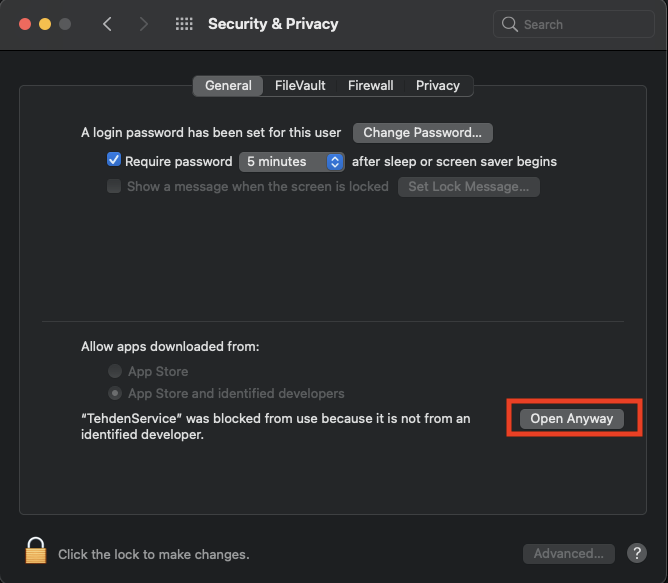 Jos ohjelma ei aukea ja kuvan mukainen varoitus aukeaa, paina "Peruuta" (Cancel). Avaa tietokoneen järjestelmäasetukisista "Turvallisuus ja yksityisyys" (Security & Privacy) ja välilehti "Yleiset" (General).