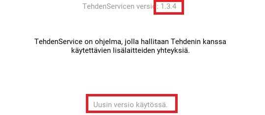 HUOM! Varsinkin vanhemmat TehdenService versiot ohjelmasta olisi hyvä poistaa ja asentaa uudempi versio kokonaan uudelleen. Uudelleen asennukseen ohjeita alempana.