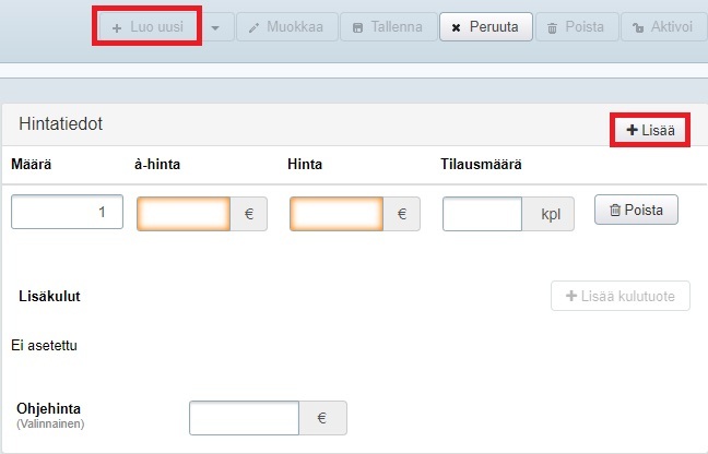- Anna tuotteelle ostohinta klikkaamalla Lisää-painiketta.