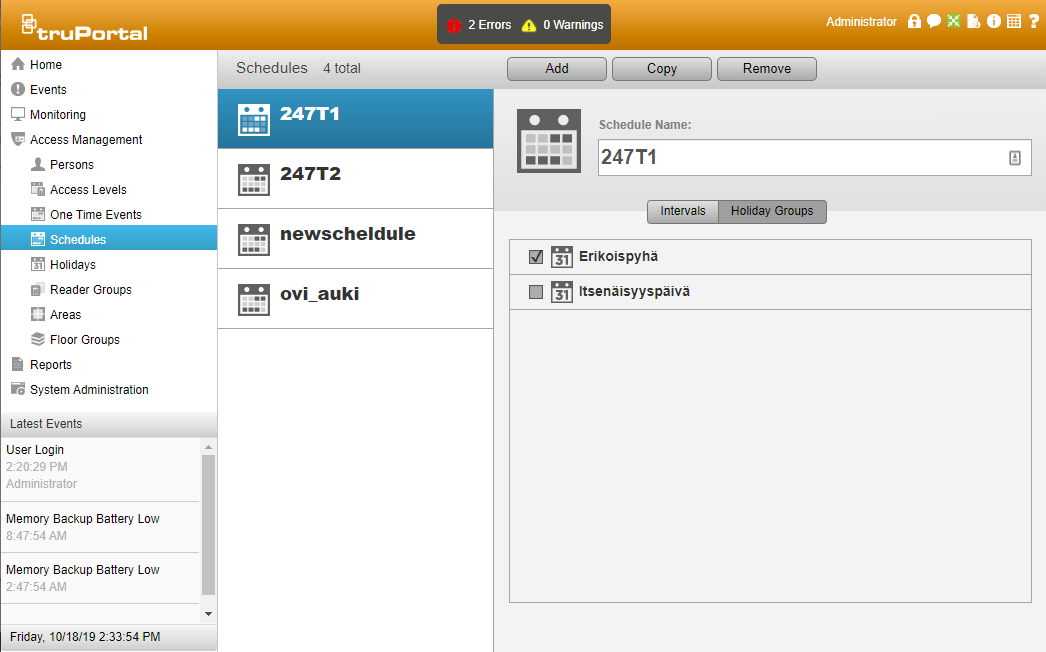 - Mene kohtaan Access Management -> Schedules ja valitse kulkuoikeusaikataulu, jolle