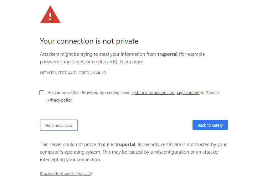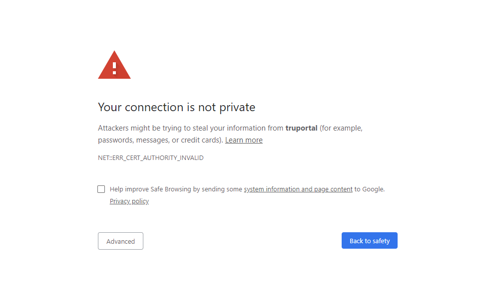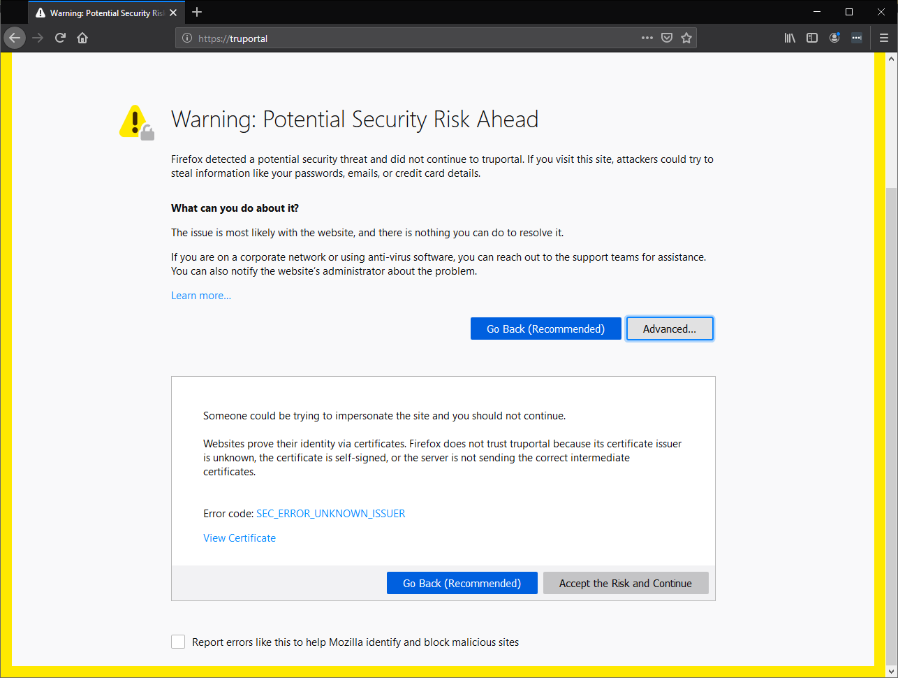 Selaimet estävät Truportalin kirjautumissivun lataamisen oletuksena. Seuraavien ohjeiden avulla voit kiertää eston: