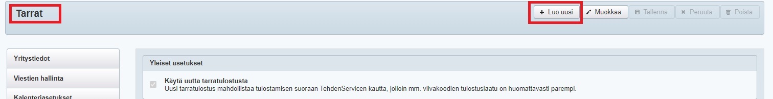 - Kun haluat luoda uuden tarran, klikkaa näkymän ylälaidan Luo uusi -painiketta: