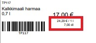 Vertailuhinta eli yksikköhinta tarralle