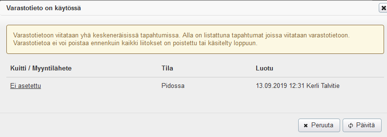 - Klikkaat varastoa ja kokeile poistaa tuotteen varastopaikkaa: