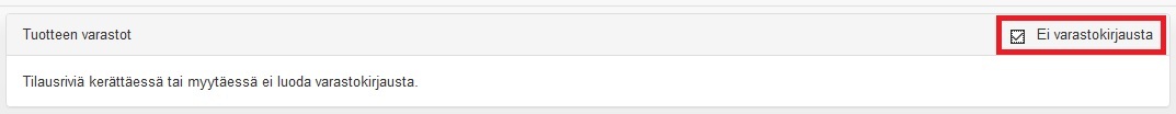 - Huom! Ei varastokirjausta -vaihtoehdon voi käydä valitsemassa jälkikäteen myös verkkokaupasta tulleella ennakkoon maksetulla tilauksella, mikäli tarpeen.