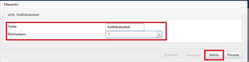 - Toista vaiheet 3 - 6 kaikille tilauksen tuotteille.