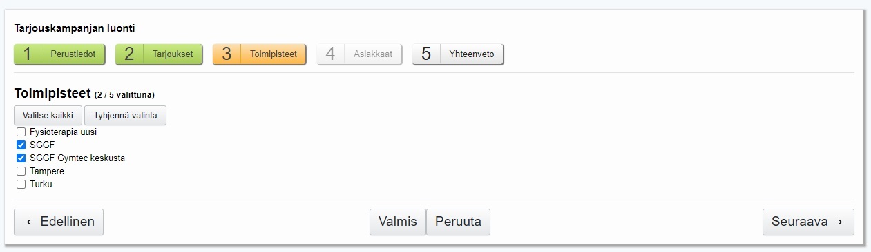 - Valitse, missä yrityksen toimipisteissä kampanja on voimassa: