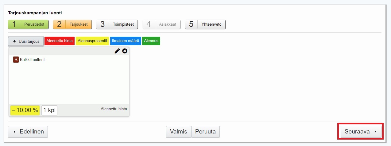 - Tallenna tarjous ja luo muut samaan kampanjaan sisältyvät tarjoukset.
