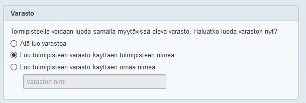 Jos taas sopimusyrittäjillä on omat tuotteensa, sopimusyrittäjä voi joko toimipisteen luomisen yhteydessä tai myöhemmin Tuotteet-ohjelmassa luoda Tehdeniin oman varastonsa ja myydä tuotteita sieltä: