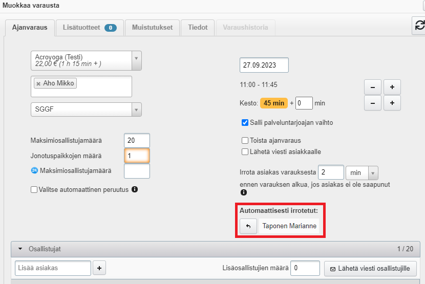 Tehden mahdollistaa varauksia perumatta jättävien asiakkaiden ajanvarauseston: tutustu ohjeeseen Automaattinen ja yksittäisen asiakkaan ajanvarausesto.